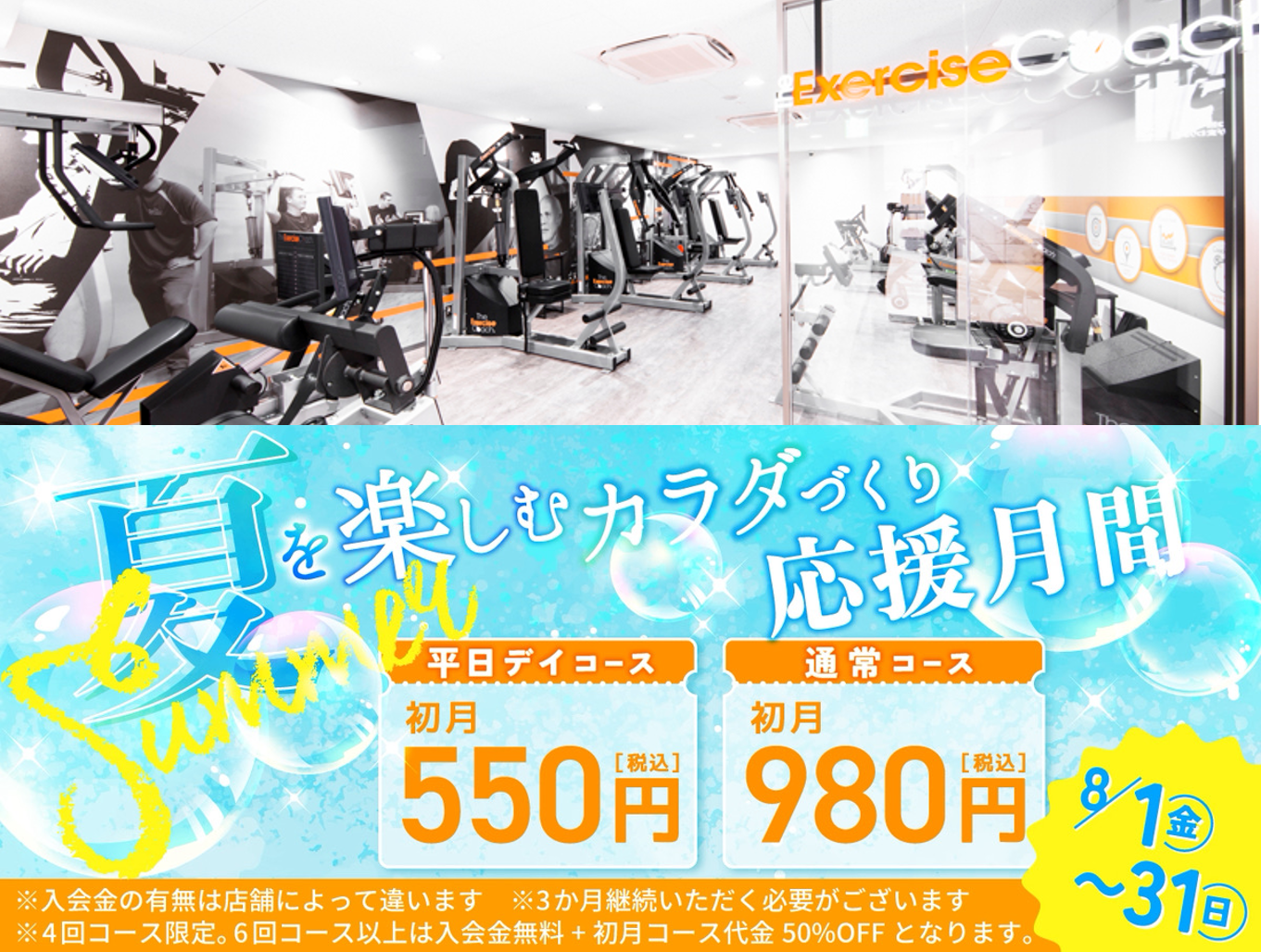 8月の入会で初月コース代金がスタンダードプラン980円/平日デイプラン550円になります!