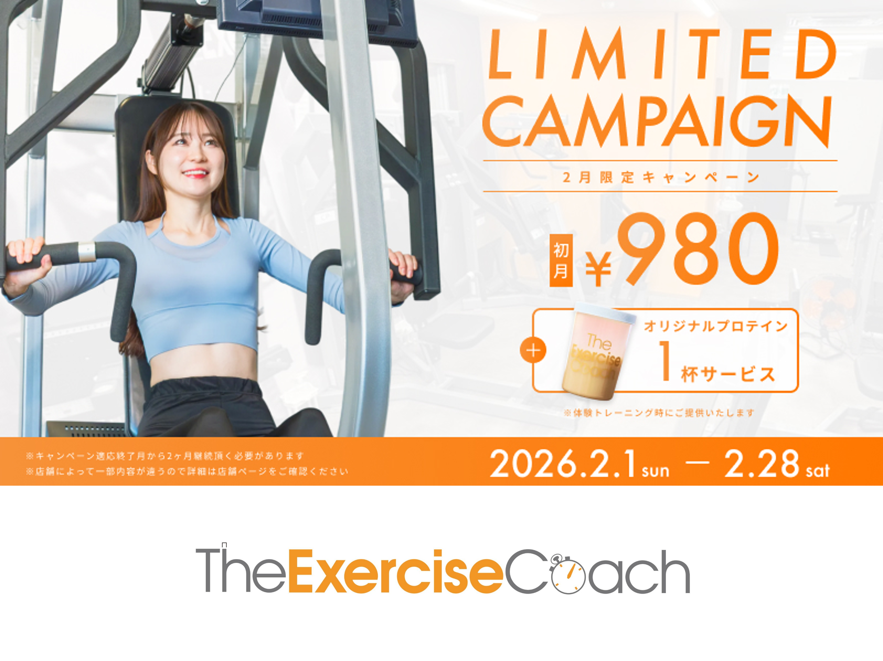 初月コース代金980円・プロテイン1杯無料サービス