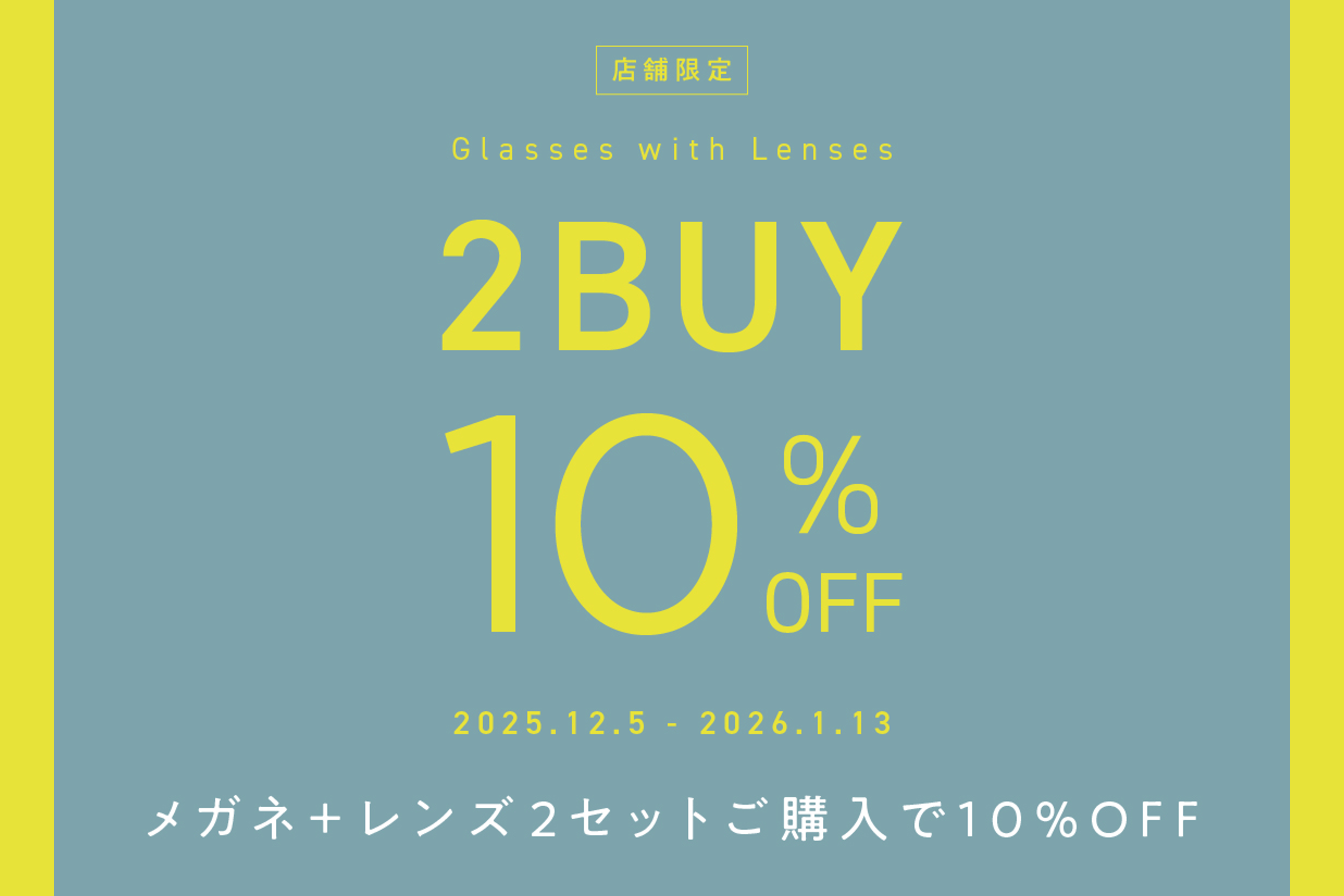 メガネフレーム+レンズのセットを2組購入で総額10%OFFとなるセールを開催!